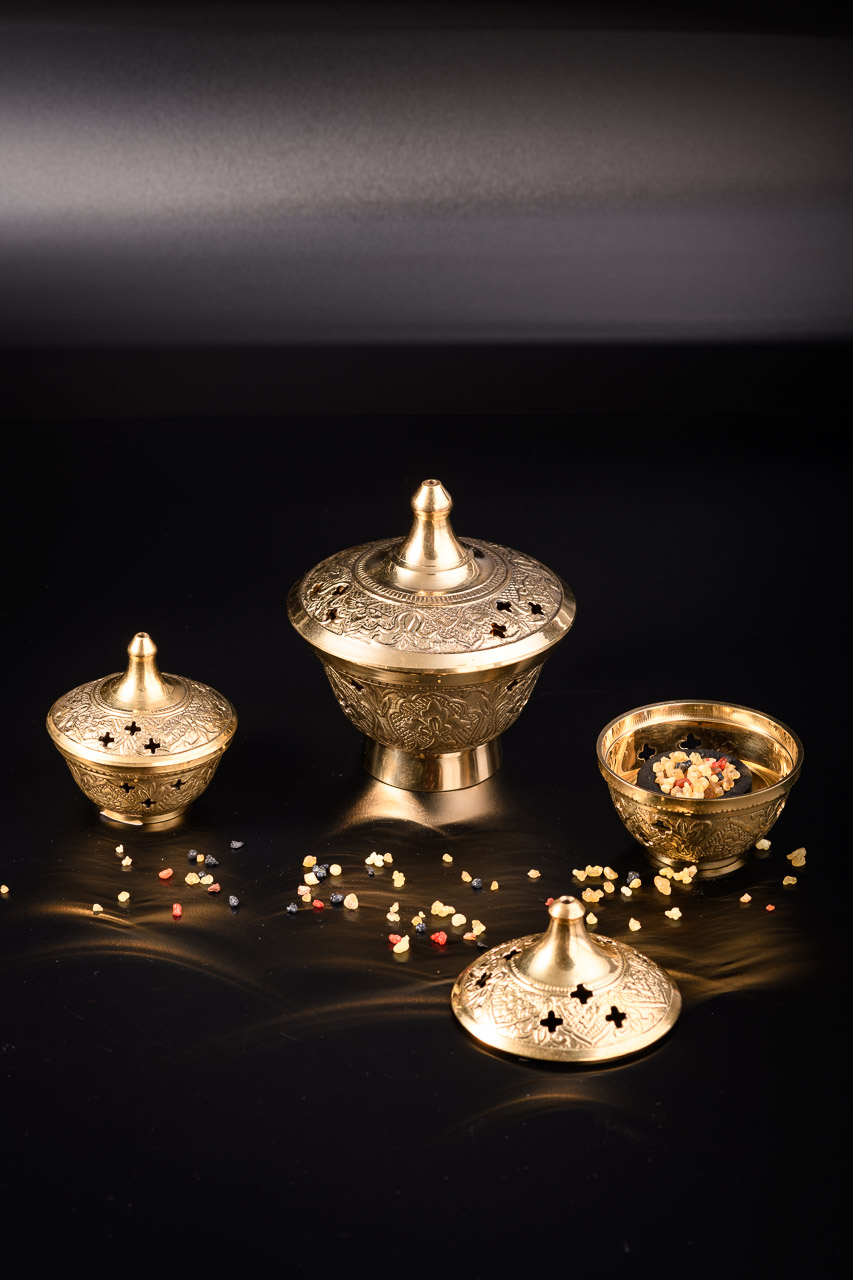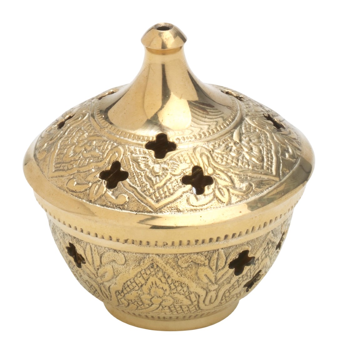 Räuchergefäß, Antikdesign aus Messing und Messing vernickelt (Silberoptik) mit Gitter.