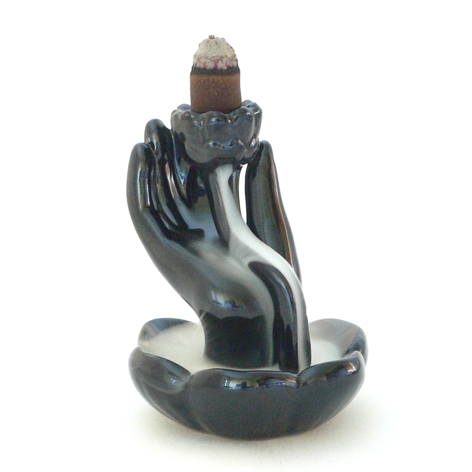 Dieser Räucherkegelhalter dient zum Abrennen von Rückflusskegeln. Durch ein Loch im Kegel und im Gefäß ergibt sich ein Rückflusseffekt. Selbstverständlich können Sie auch normale Räucherkegel / Räucherkerzen abbrennen, nur ergibt sich kein Rückflusseffekt