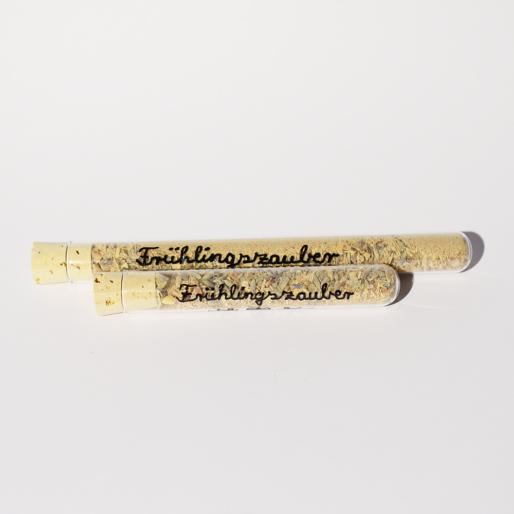 Als 5 g und 8 g im Glasröhrchen und zum Nachfüllen 20 g in einer Tüte.